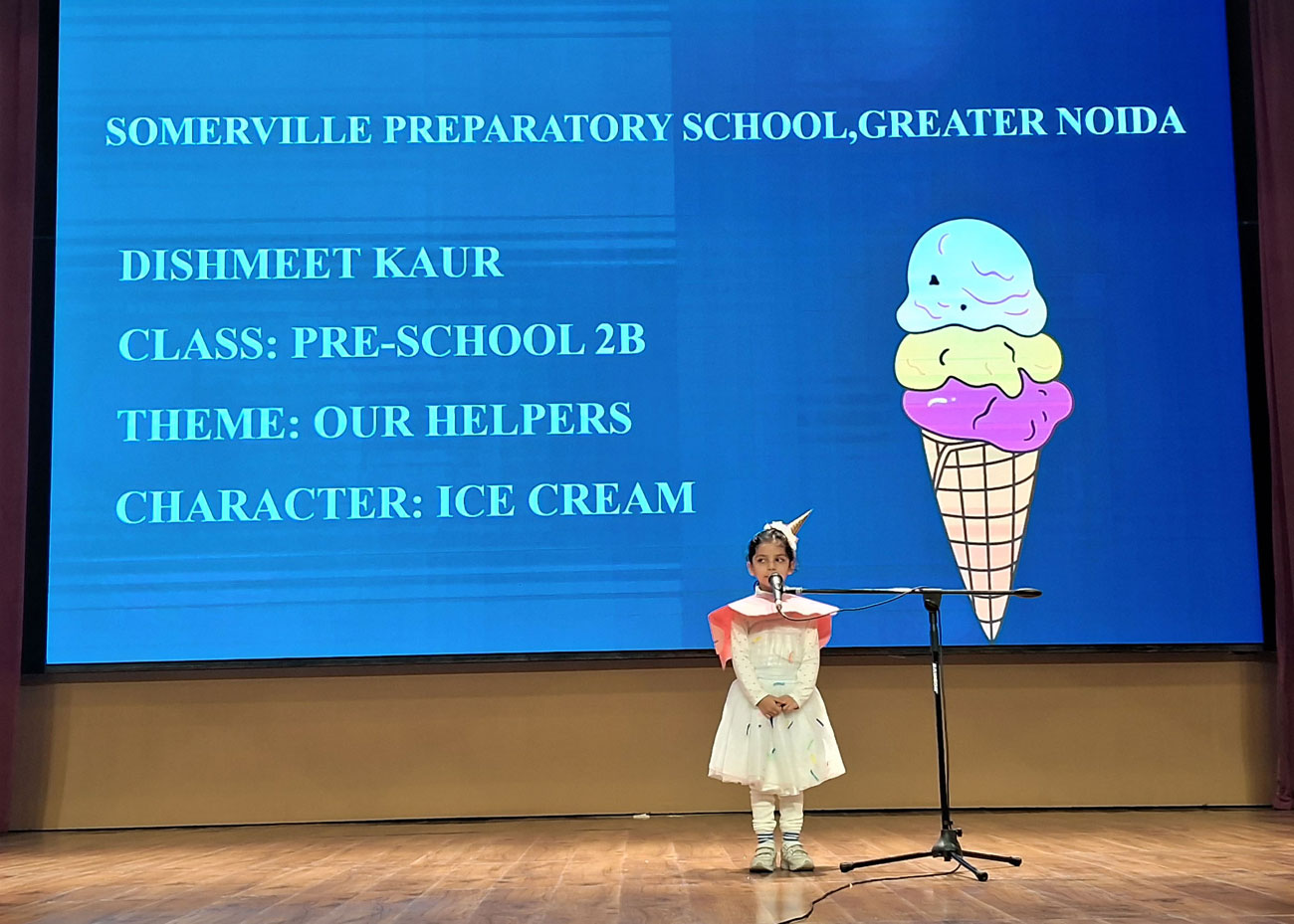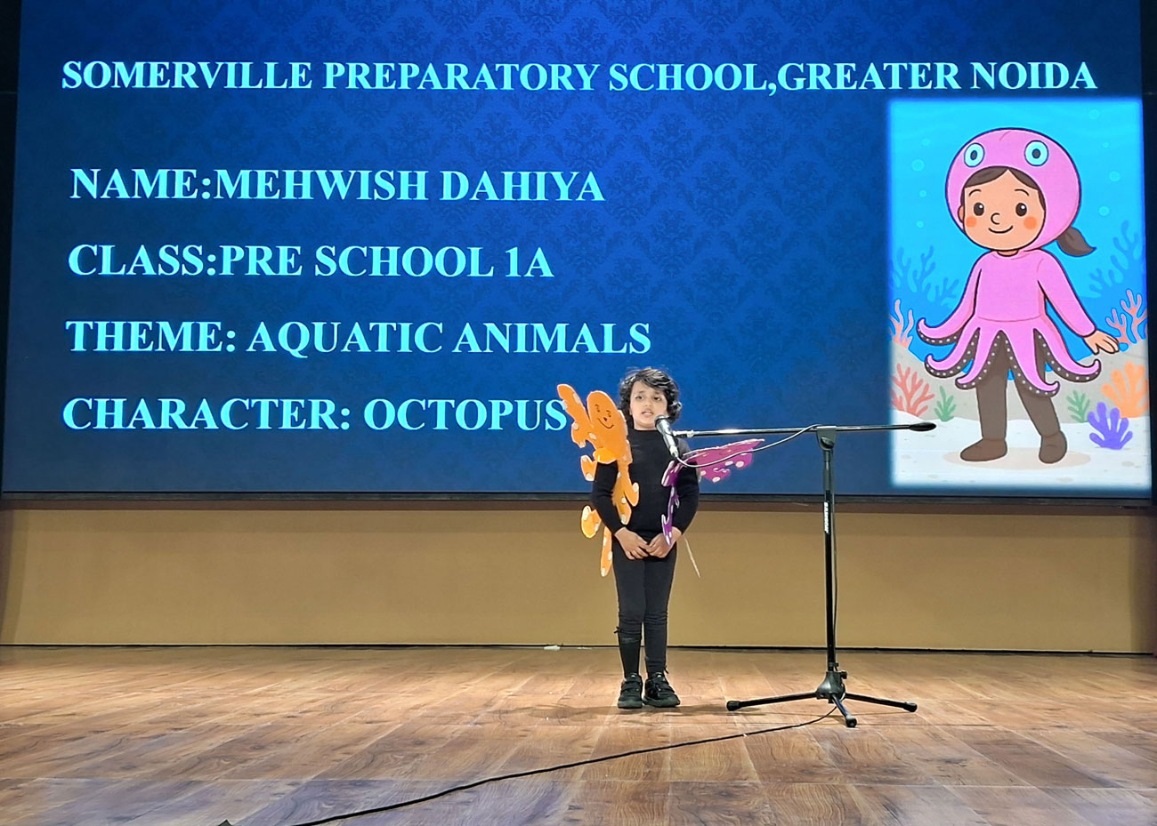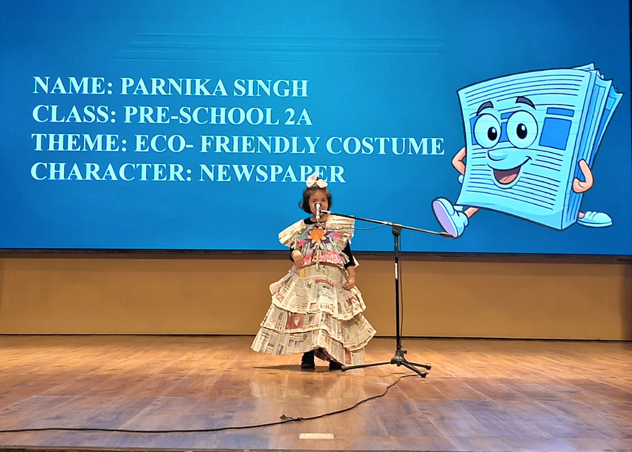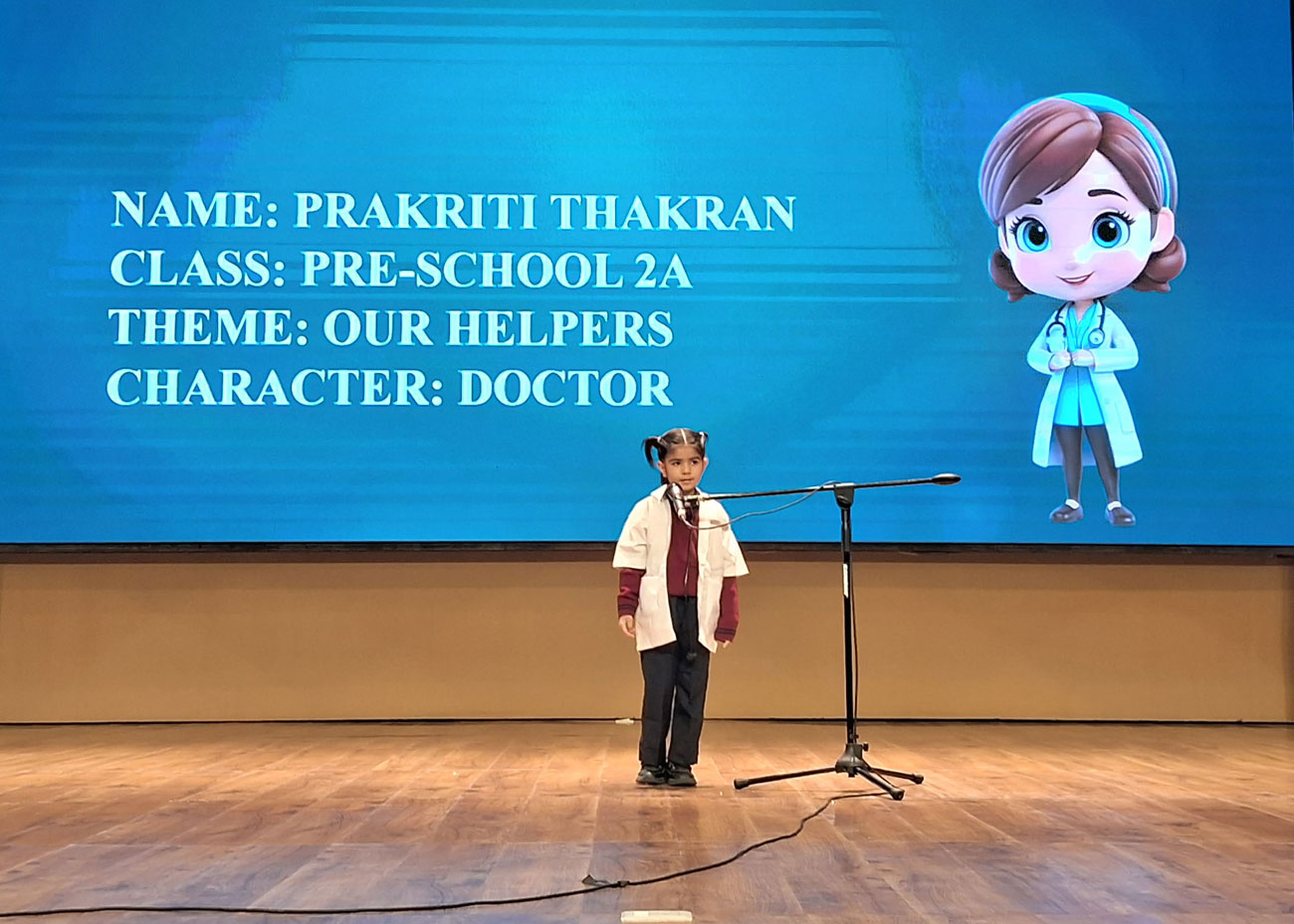 Description: Our Prep School children lit up the stage with their colourful and creative costumes in the Fancy Dress Parade. From our everyday helpers to aquatic animals, sportspersons and eco-friendly themes — each child shone with confidence and joy!!